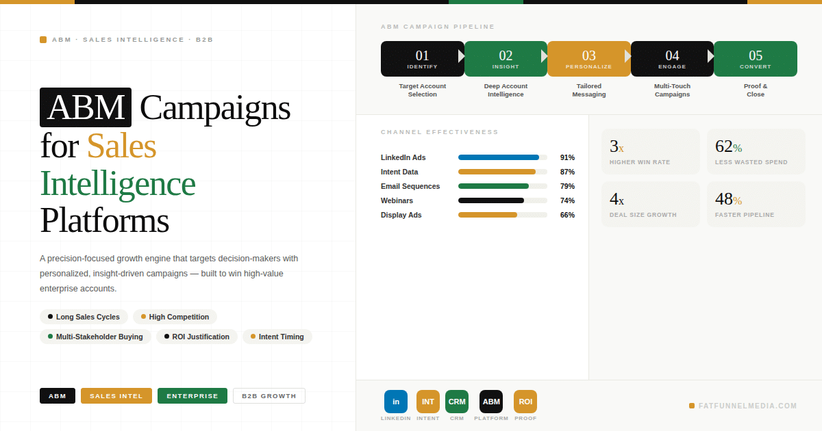 ABM campaigns offer a powerful approach for sales intelligence platforms to win high-value enterprise clients. By focusing on targeted engagement, personalized messaging, and data-driven insights, companies can move beyond traditional lead generation and build meaningful relationships with decision-makers.